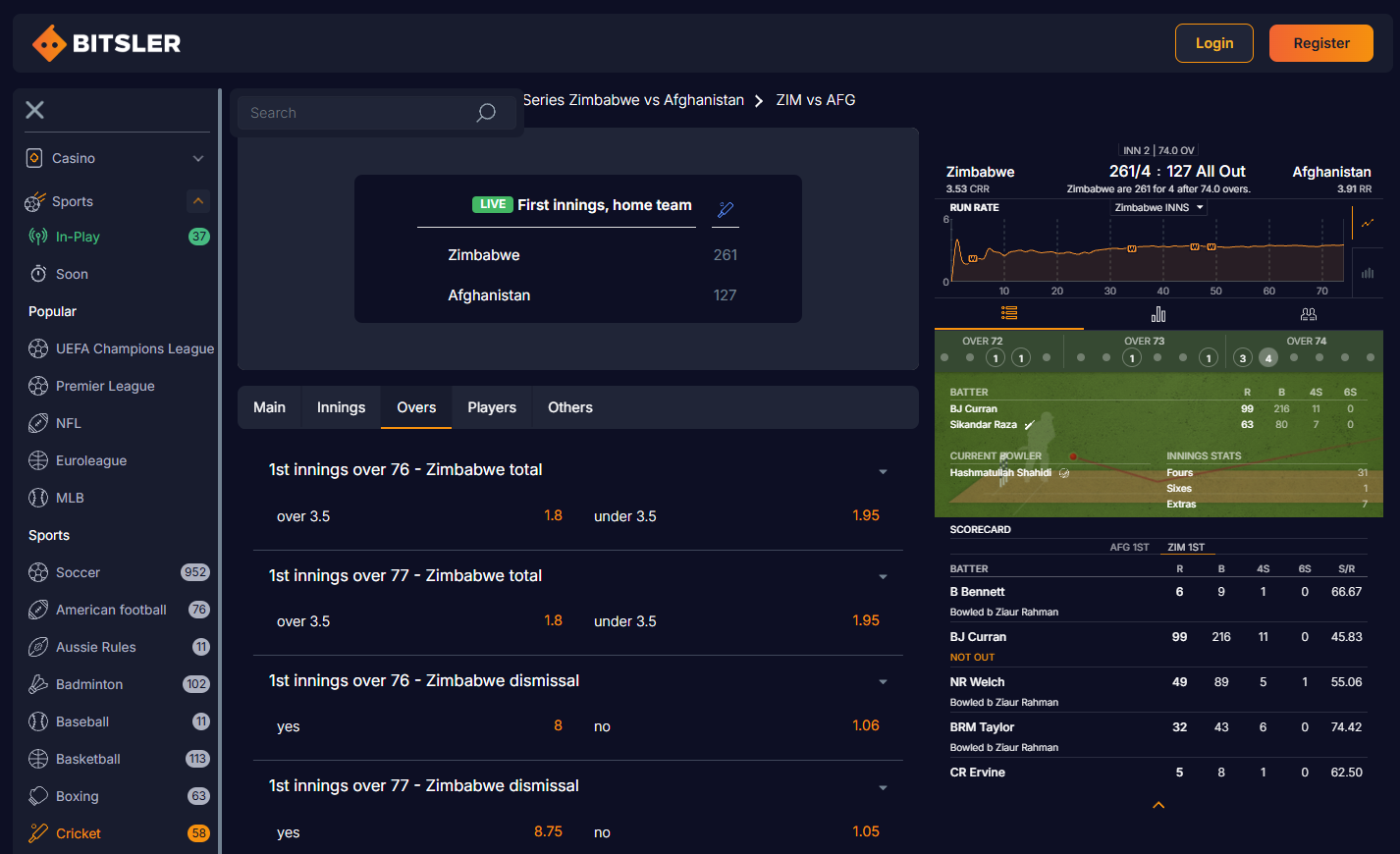 Bitsler live betting – in-play odds and match tracker