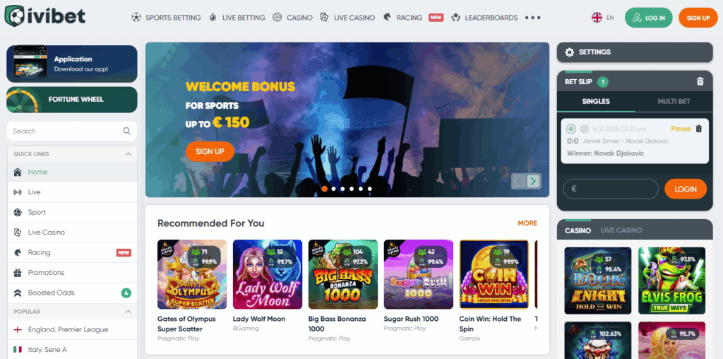 Promoted as an “all-in-one betting hub,” Ivibet offers sports, casino, and live dealer games under a single shared wallet. Its focus on quick transactions, generous bonuses, and an intuitive interface makes it a natural choice for bettors seeking a smooth, multi-product experience.